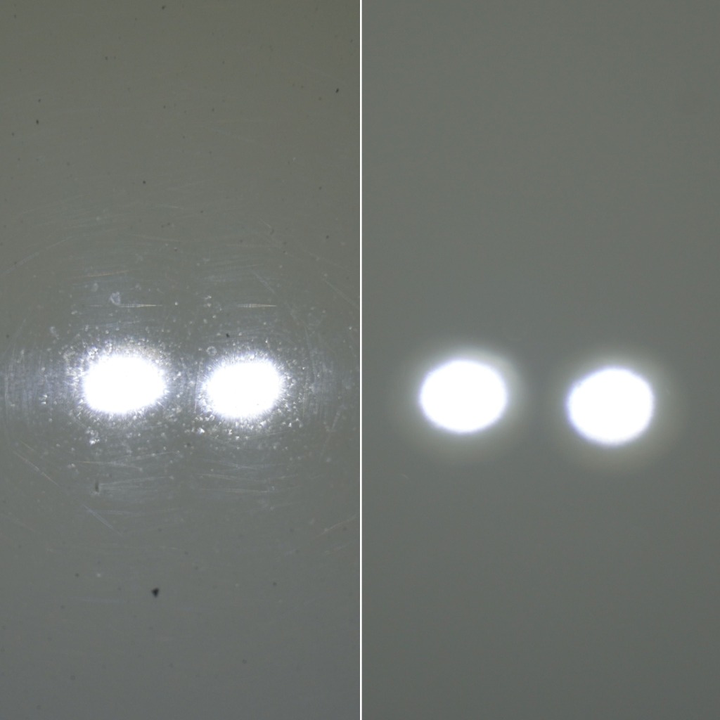"劣化した塗装を研磨などで改善し美しく仕上げること"が目的であり、仕上がった無垢な状態の塗装を“保護する手段”としてガラスコーティングやワックスを施工。
